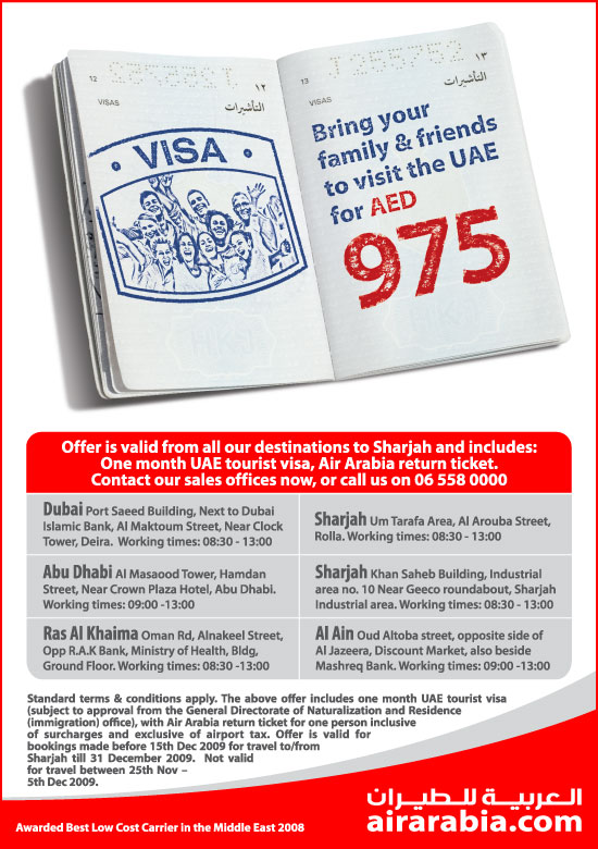 إنه لمن دواعي سرور العربية للطيران أن تساعد المقيمين في دولة الإمارات